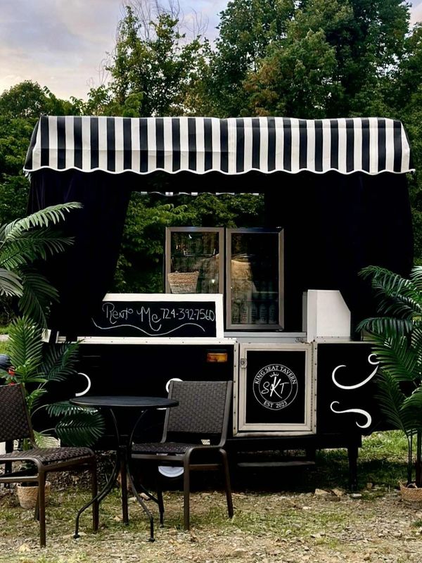 Elevate your next event with this chic King Seat Tavern mobile bar — perfect for weddings, graduation parties, birthday celebrations, and corporate events!
